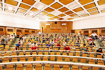 Alle Universitäten und auch die meisten Fachhochschulen haben ein Auditorium Maximum, kurz Audimax. Das Audimax ist der größte Hörsaal der Uni und bietet in einigen Fällen Platz für über 1.000 Studenten. Das Audimax wird nicht nur für Vorlesungen genutzt, sondern auch für universitäre Veranstaltungen, Festivitäten und Konzerte.